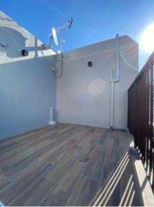 3階建ての最上階、広々としたルーフバルコニーが特長。