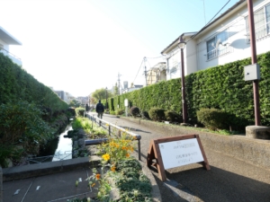 三宿の交差点からほど近く、緑道沿いで周辺は閑静な住宅地が広がっています。