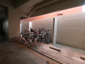 エントランスは階段になっていて、前には駐輪スペースがあります。